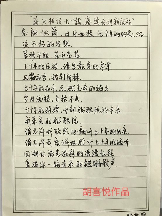 各类作品歌颂和谐美丽的校园,表达了师生对建校70周年的祝贺和对公司未来发展的真诚祝愿。