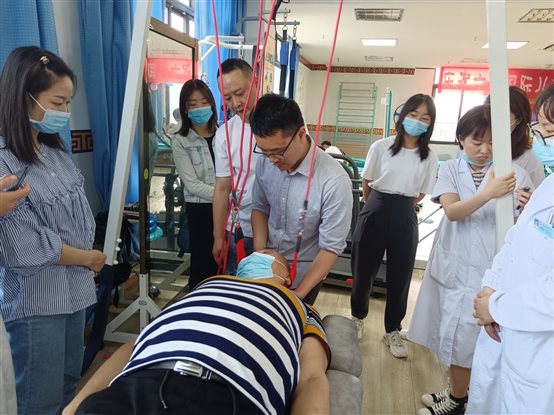 下午2:30,由成都中联复建技术应用研究院PT技术总监石青峰老师做了悬吊运动治疗技术(SET)专题培训。名山区中医医院康复科全体医生和治疗师,康复养生教研室王源、詹龙霞、舒兰清、周媛玲等4位教师参加了此次培训。石青峰老师主要就悬吊运动治疗技术(SET)的起源发展、基本原理和应用范围等理论知识进行了培训,并以颈椎关节悬吊技术临床常用为例开展了实践教学。随后陈航主任、王源老师进行了悬吊技术颈椎牵引练习,并向大家强调了站姿体位、手部着力点和发力方式等技术要点。