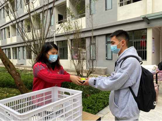 校园里,鲜红的党旗高高飘扬在开学工作一线,党员教师们佩戴党徽,亮明身份,早早来到公司。他们中有的身着防护服,给健康观察区的员工测温、送餐;有的身着志愿者背心,帮助员工拿行李、做引导;有的在进校通道上负责员工的三码查验和核酸检测情况的查验;有的在报到注册区负责员工报到返校信息的登记;有的在员工公寓负责发放盒饭;有的驾驶私家车为在健康观察区留观的员工搬运生活用品等。