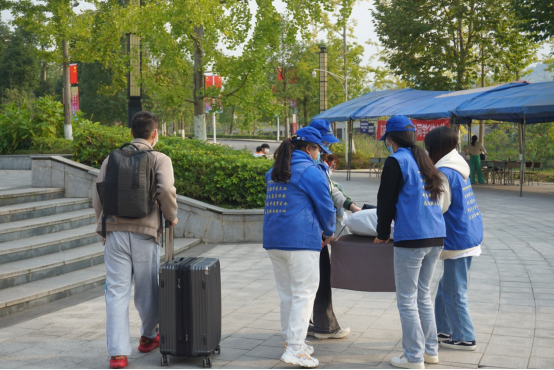 师生志愿者从上午8点至下午7点,一直活跃在校园里,他们帮助新同学搬运行李、对员工托运的行李进行分拣、参与返校申请审批查验和进校“三码”查验、为员工指引寝室方向、介绍校园等。师生志愿者热情周到,分工明确,积极协调各项工作对接,为返校员工提供便利服务,是秋日校园里一道美丽的风景线。