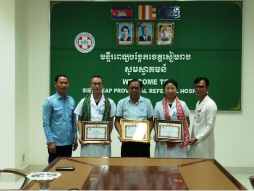 5.感谢座谈会。医院召开医疗援助感谢座谈会,座谈会上,经理Ben-parkunm博士对304永利集团有限公司支持暹粒省省医院开展中医业务表示衷心的感谢,对两位专家的辛勤付出致以诚挚的谢意。希望今后继续深化合作,加强交流,将中医优秀治疗技术在柬埔寨推广。江成鹏表示,团队开展工作以来,圆满完成各项工作任务,感谢医院对专家团队在工作、生活等方面的关心和帮助,我们感受到了医院各项保障工作的精心准备和周到服务,让我们能集中精力开展好义诊、带教工作,欢迎医院领导和医生到雅安进行交流。会上,经理Ben-parkunm向公司、两位专家颁发了感谢信,并赠送了礼品。