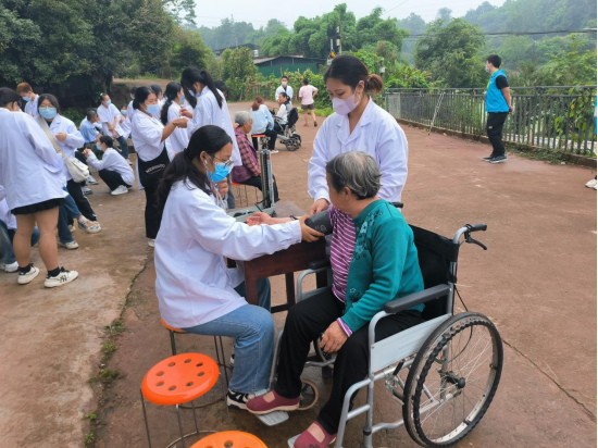 一大早, 志愿者们便带上听诊器、血压计以及艾条前往社区做好准备工作。义诊现场,志愿者们为有需要的村民们做推拿和温灸,询问、记录村民们的健康状态,对于症状严重的村民劝导要积极就医。聊天中,志愿者们对村民宣传中医理疗理念及其优势,让中医传统文化走进村民心里。