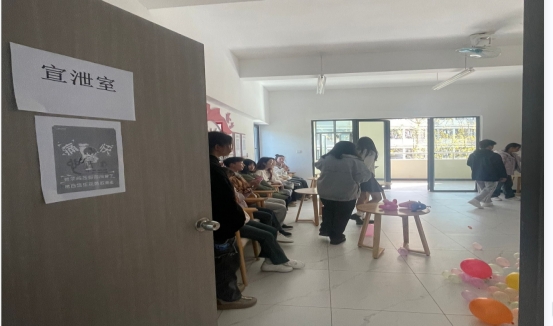 接着,在康养公司党团活动室举办“声入人心,吐露心声”活动。杜翠华老师带领班级心理委员提前在活动室里准备了气球和宣泄娃娃,给有宣泄需求的同学提供宣泄物。活动开始时,同学们进入活动室大声地说出自己的烦恼和不安等负面情绪,通过踩爆气球,让烦恼随之远去。同时杜翠华老师也亲切询问并帮助同学们,希望同学们正确对待负面情绪和挑战,保持生活的活力与激情。