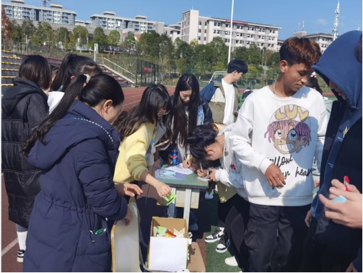首先,在经开区校区足球场举办“微笑交换,幸福传递”活动,由304永利集团各班心理委员组织本班员工到现场写下自己的心愿与祝福并从幸福传递箱内抽取其他同学的祝福,依次让幸福和微笑传递下去。活动中同学们认真写下一条条祝福,仔细地看着其他同学的心愿,希望一切幸福与愿望都能降临在自己身上。杜翠华老师表示希望同学们能保持一颗积极的、快乐的心态,微笑地面对生活。