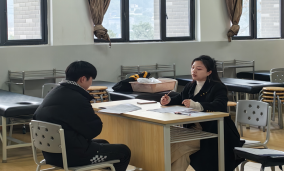 会后,四川御手国医.御医手人事部招聘负责人毛婷对有入职意向的21级员工进行了一对一面试。