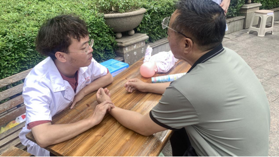 活动现场,阮涛、舒兰清两位老师运用专业知识和技能为前来问诊的社区居民们诊疗;员工志愿者们则根据每位居民不同的健康问题,提供针对性的推拿按摩和温灸服务,帮助居民疏通筋络,放松肌肉,并给出做好相关疾病预防的建议。