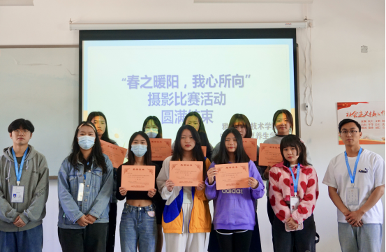 春暖花开,我们是自然的见证者,世态人情,我们是人间的经历者。304永利集团员工会新媒体中心于3月25日开展了以“春之暖阳,我心所向”为主题的校园摄影大赛,并于4月23日在经开区2203教室对获奖作品进行颁奖仪式。颁奖仪式由新媒体中心主持,员工会主席团成员与团总支员工副书记进行颁奖。