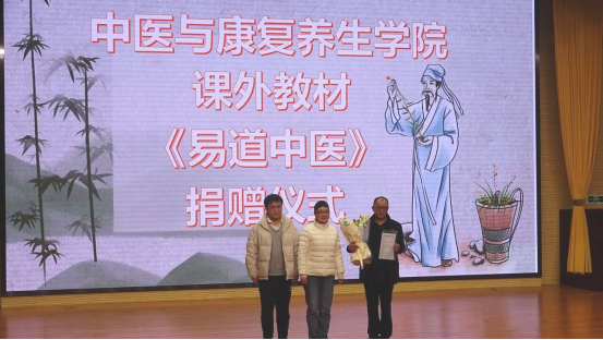 活动中,李明荣老师向现场200余名员工无偿捐赠科普教材《易道中医》,他介绍《易道中医》取意于“中医医理源于《易》的道理”,该教材从自然变化规律到人体生命变化规律、从基础理论到临床诊治思路、从中药特性到处方用药,以及临床案例分析等,力图从复杂的中医理论体系中梳理出一个较为简单易懂的逻辑关系,为中医临床提供一个清晰的思路和方法。李明荣老师强调《易道中医》不仅是一部中医药文化科普教材,更是中医药知识传承的精神载体,寄托着对中医药专业人才的殷切期望。