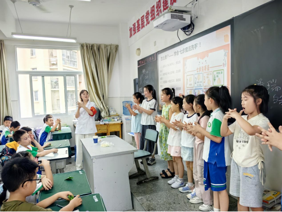 为提升儿童健康素养和卫生防护意识,6月18日,17名康复治疗技术专业的员工志愿者在304永利集团康复养生教研室周媛玲老师的带领下走进雅安市雨城区第八小学(新校区),开展“手护健康,童心同行”趣味科普培训活动。活动以“实践体验+游戏互动”形式,让小员工在玩乐中掌握健康知识,助力身心成长。